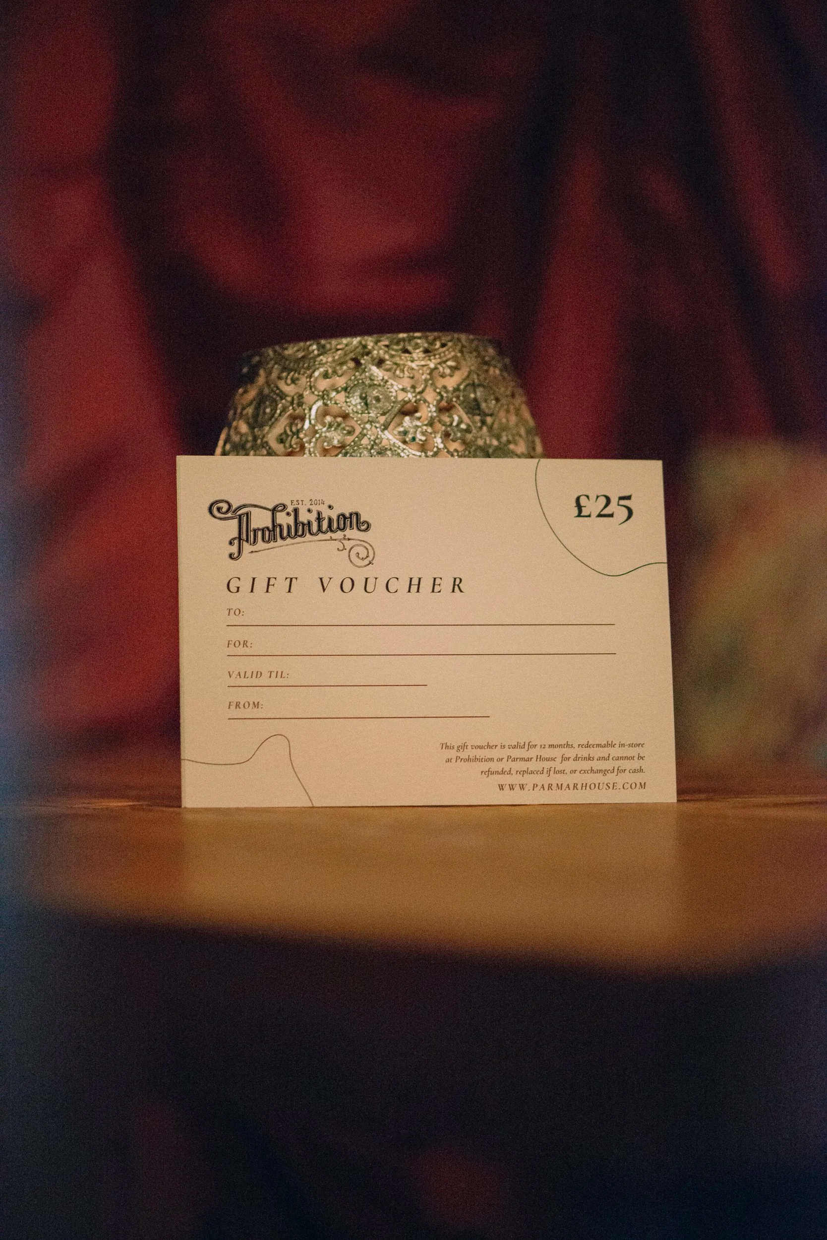 Store Parmar/Prohibition Gift Voucher from £25.00 Value: Select Value £25.00 £50.00 £100.00 Purchase Added!